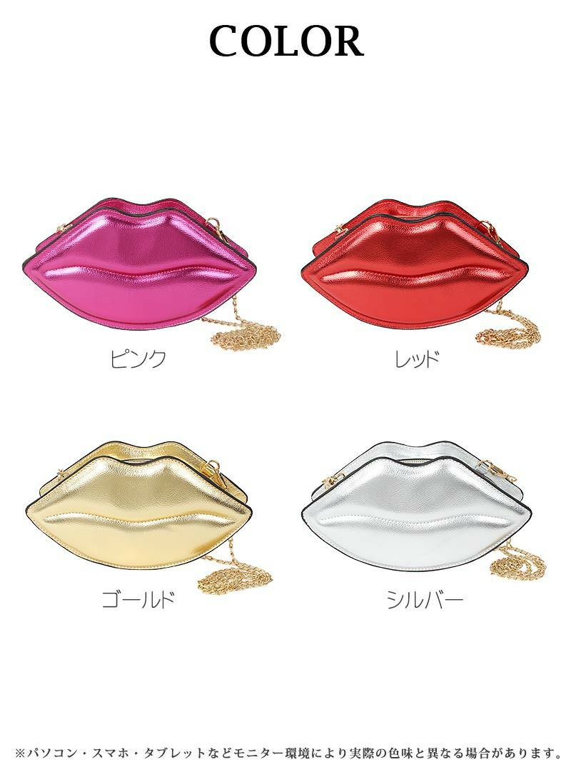 コスプレをアップグレードさせる♪ キスマークデザインメタリックショルダーバッグ【Ryuyu】(フリーサイズ)(ピンク/レッド/ゴールド/シルバー)
