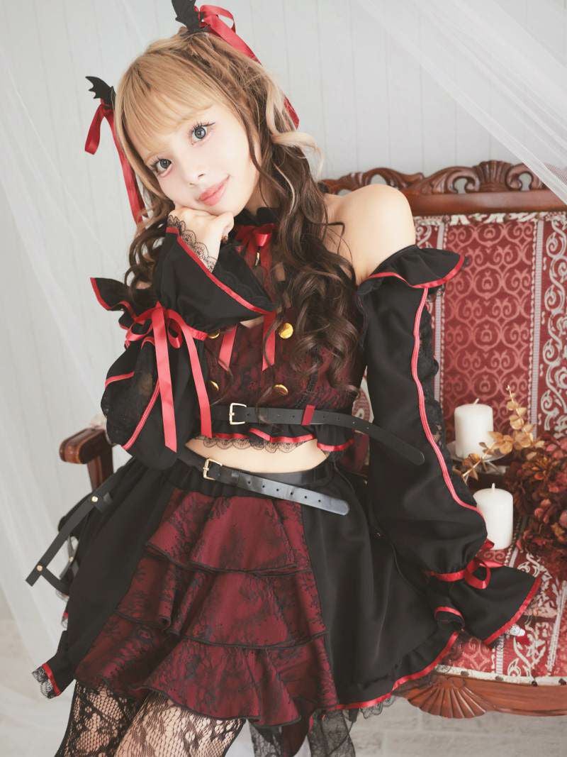コスプレ 袖付きロリータ風吸血鬼ギャルコスプレ あいさ あいみん 着用 レディースコスプレ7点セット【Ryuyu】