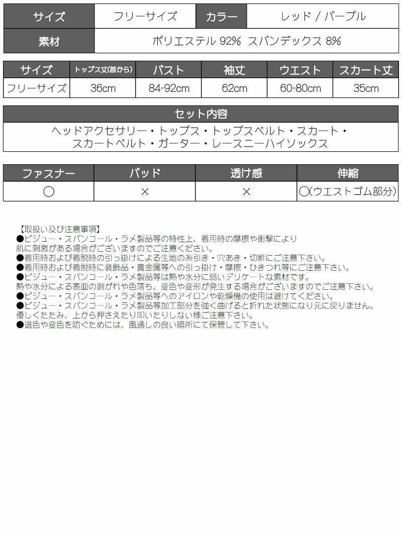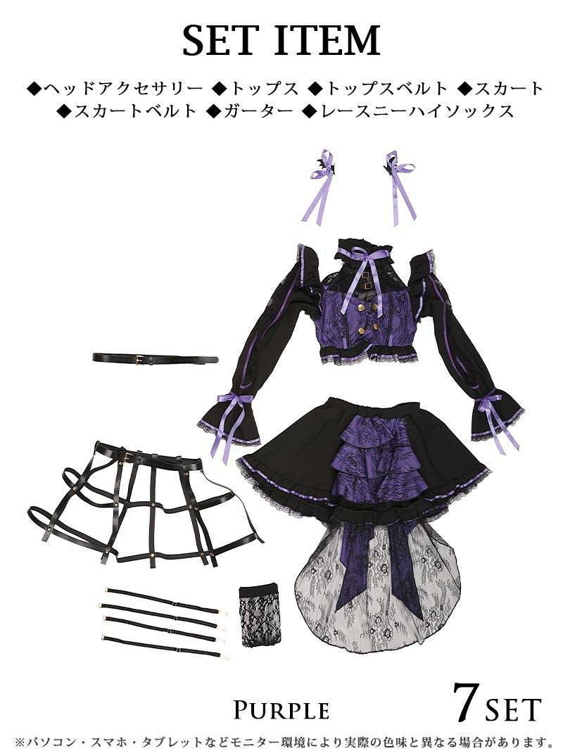 セット内容:ヘッドアクセサリー・トップス・トップスベルト・スカート・スカートベルト・ガーター・レースニーハイソックス