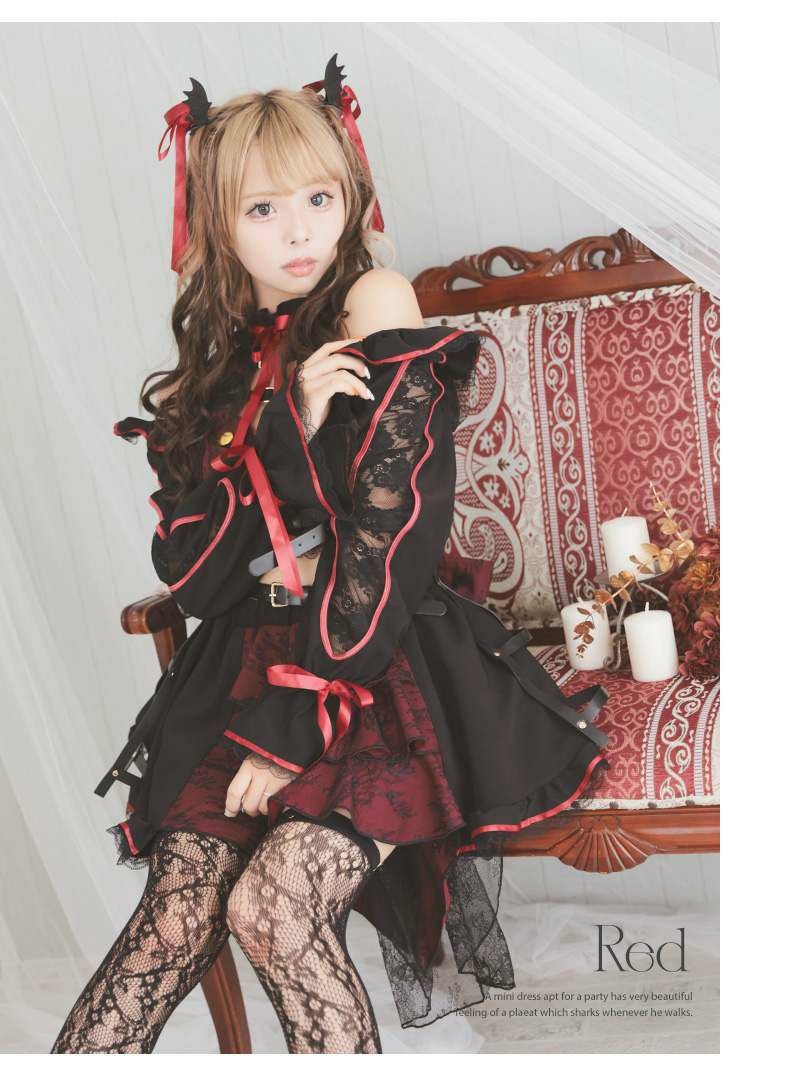 露出控えめなのにちょっぴりsexy コスプレ ブラックレース地雷系ヴァンパイアハロウィンコスプレ あいさ あいみん 着用 レディースコスプレ7点セット【Ryuyu】(フリーサイズ)(レッド/パープル)