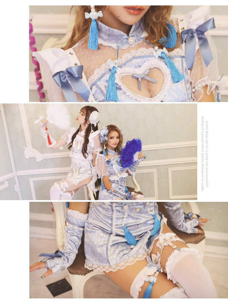 6. コスプレ ハートデザインファンシーチャイナコスプレ れいぽよ まぁみ 着用レディースコスプレ9点セット【Ryuyu】(フリーサイズ)(ホワイト/ブルー)