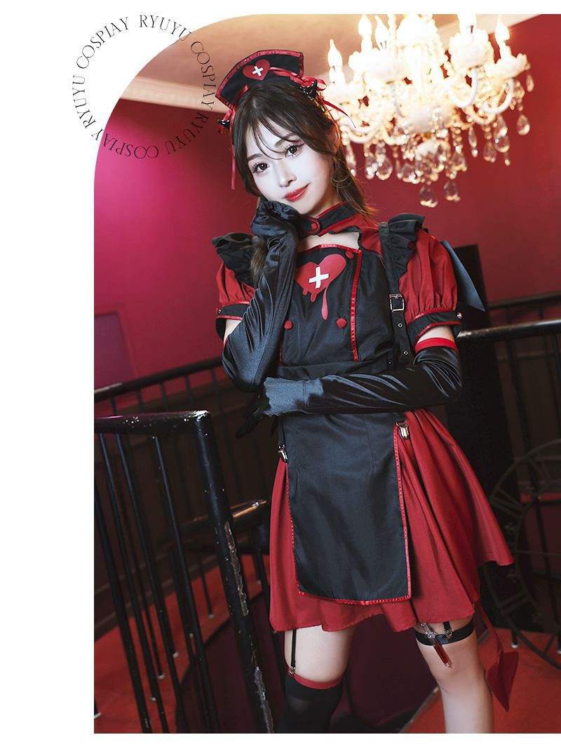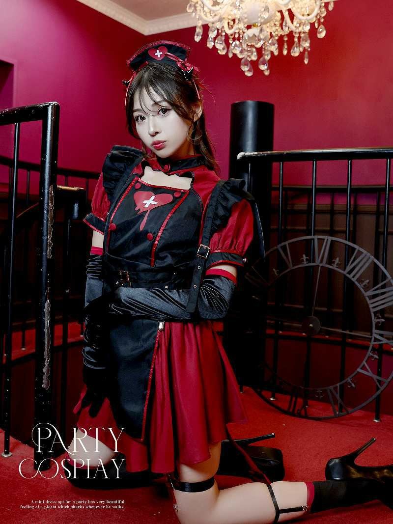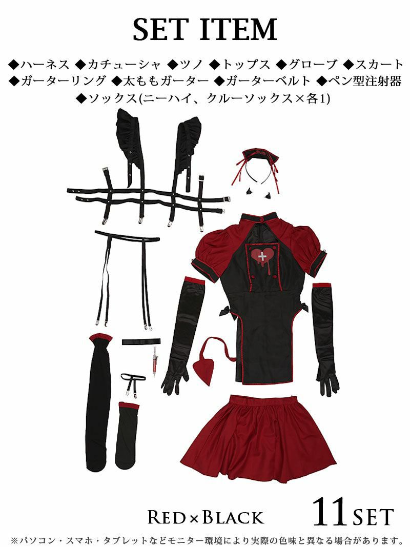 6. コスプレ ブラックデビルナースコスプレ ゆずは 着用 ハロウィンコスプレ11点セット【Ryuyu】(フリーサイズ)(レッド×ブラック)