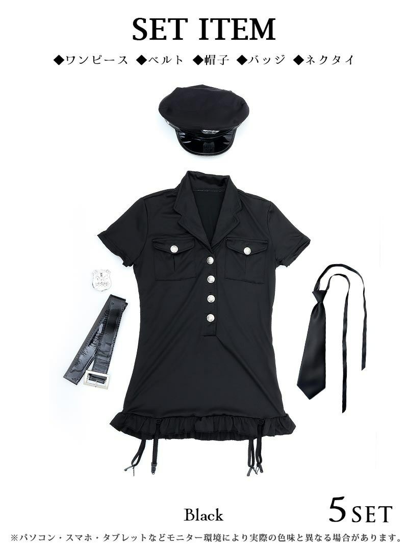 4. コスプレ セクシーポリスミニスカ制服コスプレセット【Ryuyu】(M)(ブラック)