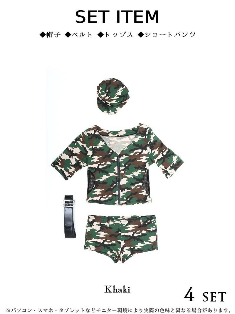 迷彩×マイクロミニでセクシーにキマるハロウィン仮装♪ コスプレ SWAT風アーミーセットアップコスプレ【Ryuyu】(M)(カーキ)