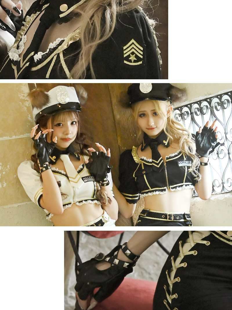 4. 【訳ありアウトレット】アニマルポリスのへそ出しめっかわ激安ギャルコスプレセット あいさ あいみん 着用【Ryuyu】(フリーサイズ)(ブラック)
