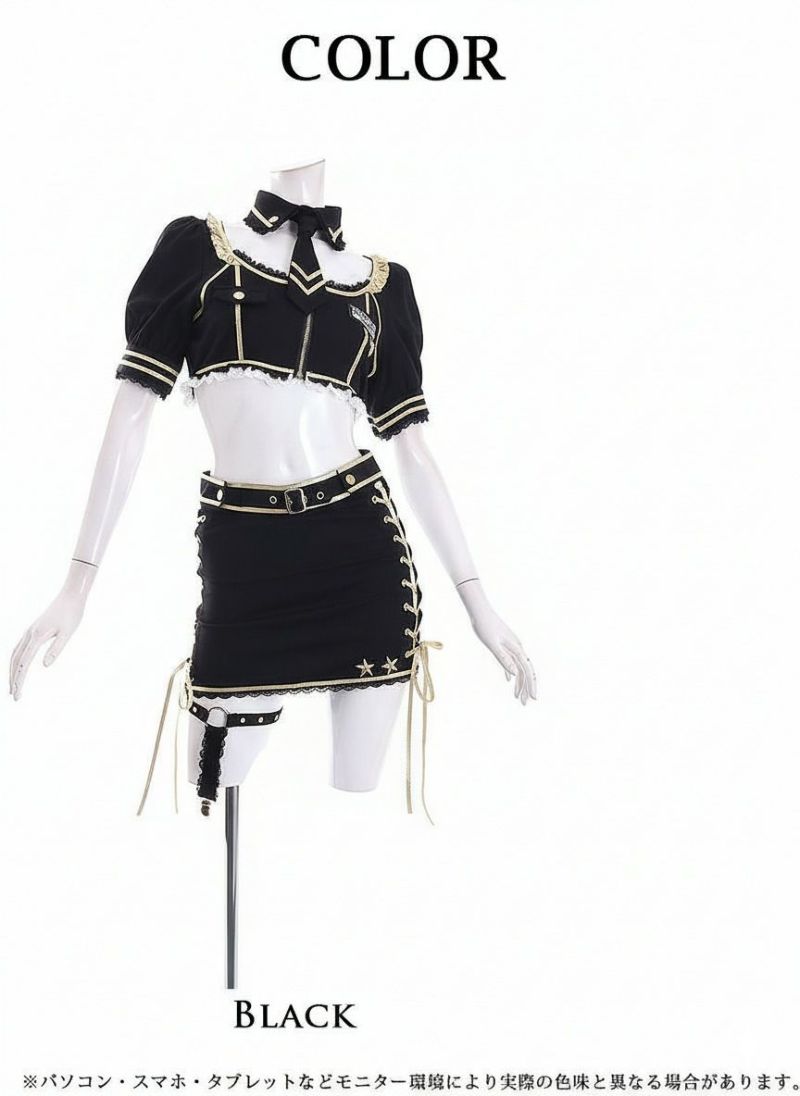 訳あり超cuteコスプレをお得に♪ 【訳ありアウトレット】アニマルポリスのへそ出しめっかわ激安ギャルコスプレセット あいさ あいみん 着用【Ryuyu】(フリーサイズ)(ブラック)