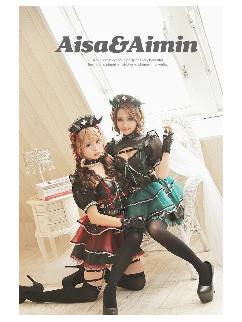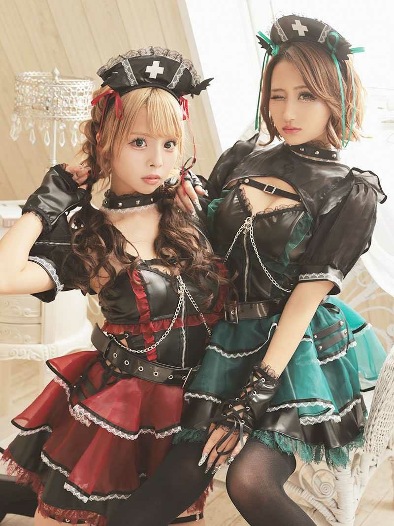 地雷系デビルナースで悩殺! コスプレ 悪魔ナースゴスロリギャルコスプレ あいさ あいみん 着用 レディースコスプレ10点セット【Ryuyu】(フリーサイズ)(レッド/グリーン)