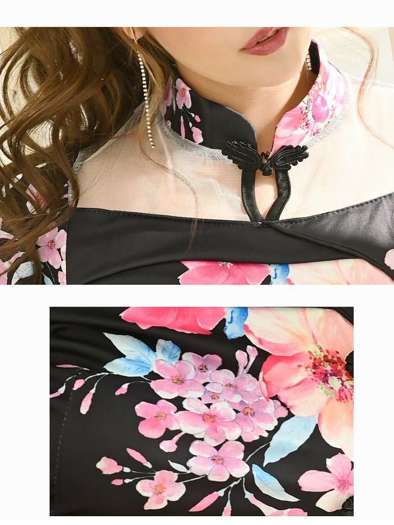 【訳ありアウトレット】ストレッチ花柄プリントミニ丈キャバワンピース【RyuyuChick】