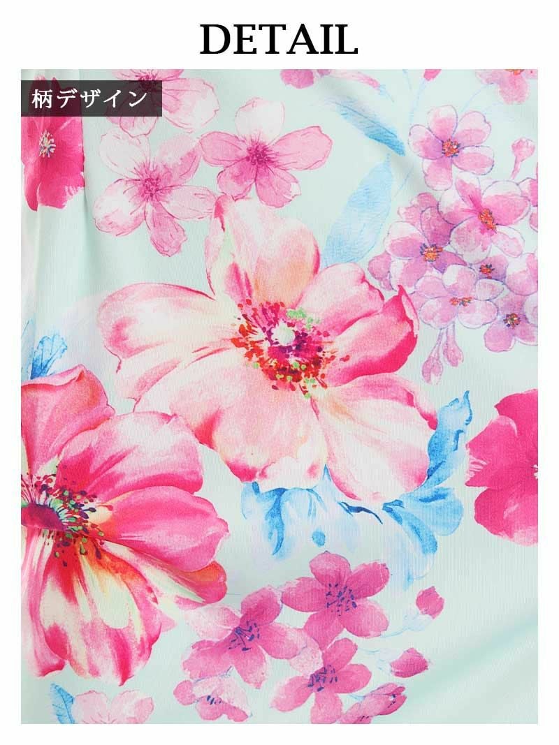鮮やかな花柄プリントが目を引くミニ丈キャバドレス。タイトなシルエットでスタイルを美しく引き立てます。