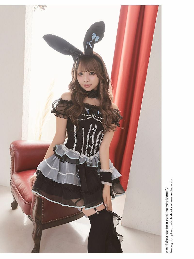 かわいさ際立つゴスロリ風バニー♪ コスプレ ドーリーバニーガールデザインギャルコスプレ あいさ 着用 ハロウィンコスプレ【Ryuyu】(フリーサイズ)(ブラック×ブルー)