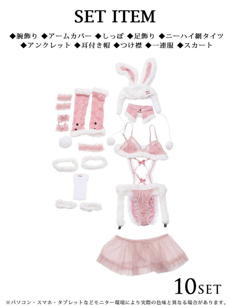 もこもこうさぎであざとく攻める♪ コスプレ うさ耳ピンクバニーセクシーコスプレ ゆずは 着用 ハロウィンコスプレ10点セット【Ryuyu】(フリーサイズ)(ピンク)