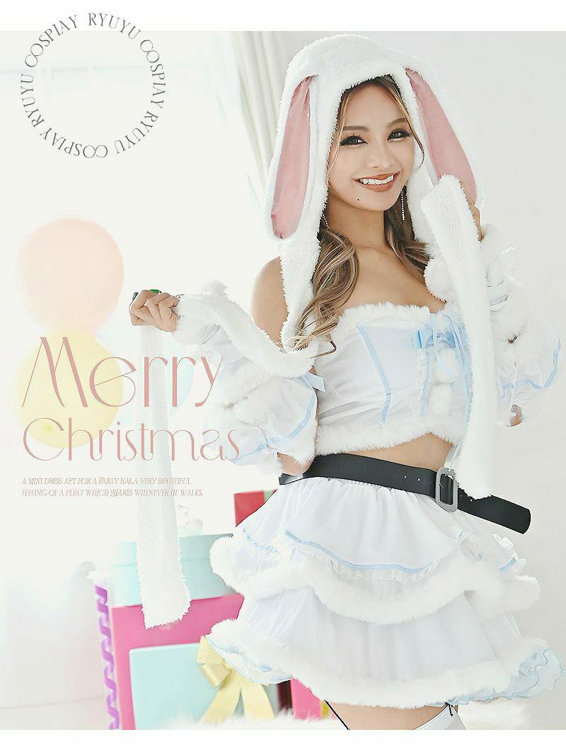 もこもこ白ウサギコスプレ♪ 【訳ありアウトレット】サンタコスプレ ファー垂れ耳うさぎギャルコスプレサンタ豪華セット【Ryuyu】(フリーサイズ)(ホワイト)