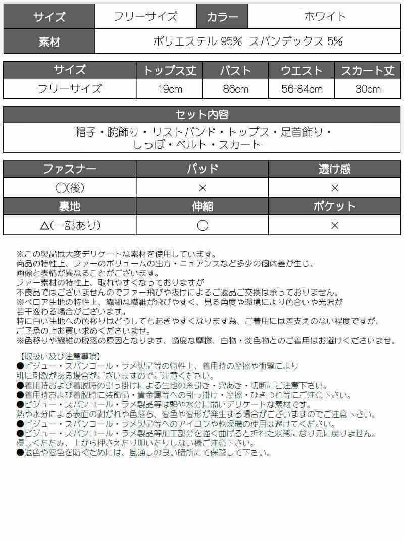 セット内容:帽子・ニーハイソックス・腕飾り・ガーターベルト・リストバンド・足首飾り・トップス・しっぽ・スカート・ベルト