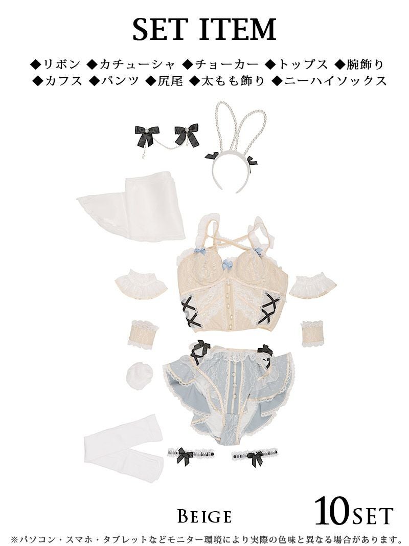 今年のハロウィンはエロ可愛い女で仕上げる♪ コスプレ パールバニーランジェリー風レースギャルコスプレ まぁみ れいぽよ 着用 レディースコスプレ7点セット【Ryuyu】(フリーサイズ)(ベージュ/ブルー)