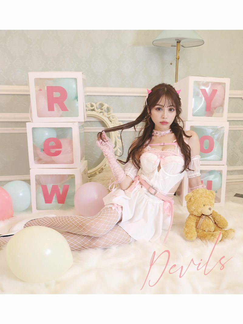 7. コスプレ ドーリーエロティックランジェリーデビルコスプレ ゆずは れいぽよ 着用 ハロウィンコスプレ9点セット【Ryuyu】(フリーサイズ)(ホワイトピンク/ピンクブラック)