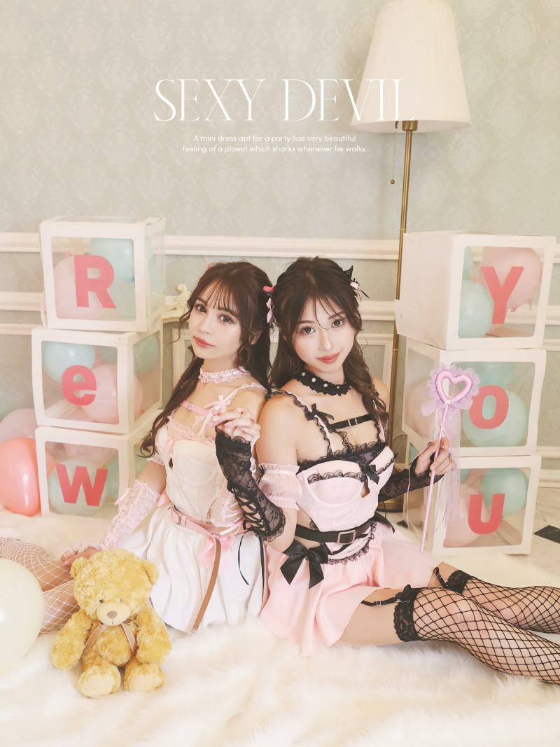 エロ可愛い雰囲気があざとすぎる♪ コスプレ ドーリーエロティックランジェリーデビルコスプレ ゆずは れいぽよ 着用 ハロウィンコスプレ9点セット【Ryuyu】(フリーサイズ)(ホワイトピンク/ピンクブラック)