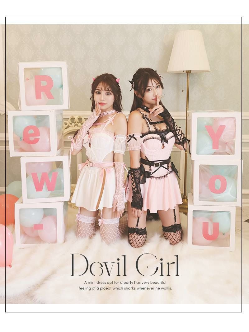 夢かわいい量産型コスプレ♪ コスプレ ランジェリーセクシーデビルコスプレ ゆずは れいぽよ 着用 ハロウィンコスプレ6点セット【Ryuyu】(フリーサイズ)(ホワイトピンク/ピンクブラック)