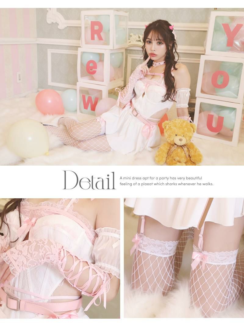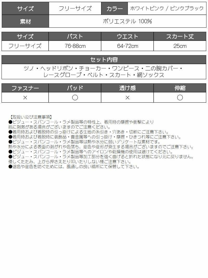 セット内容:ワンピース・スカート・ヘッドリボン・角・チョーカー・レースグローブ・二の腕カバー・ベルト・網ソックス