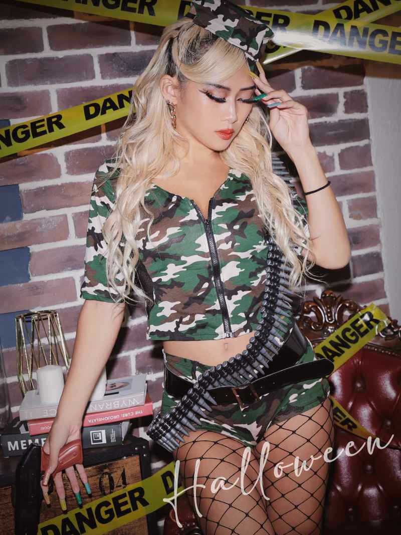 迷彩柄のカモフラデザインにショートパンツやマイクロミニのズボンスタイルでセクシーさもプラス。