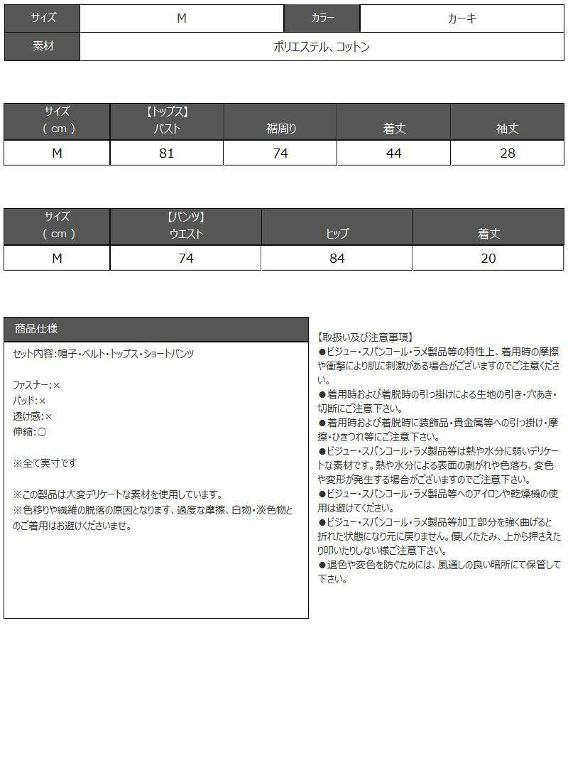 セット内容:帽子・ベルト・トップス・ショートパンツ