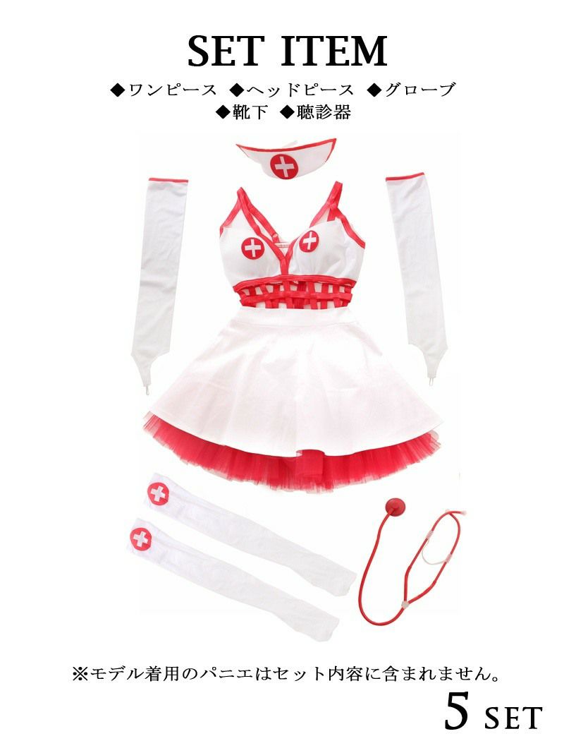 定番人気の白衣の天使!めちゃかわなナースになれちゃう、ワンピースの他に聴診器など小物も付いた5点制服コスプレセット。
