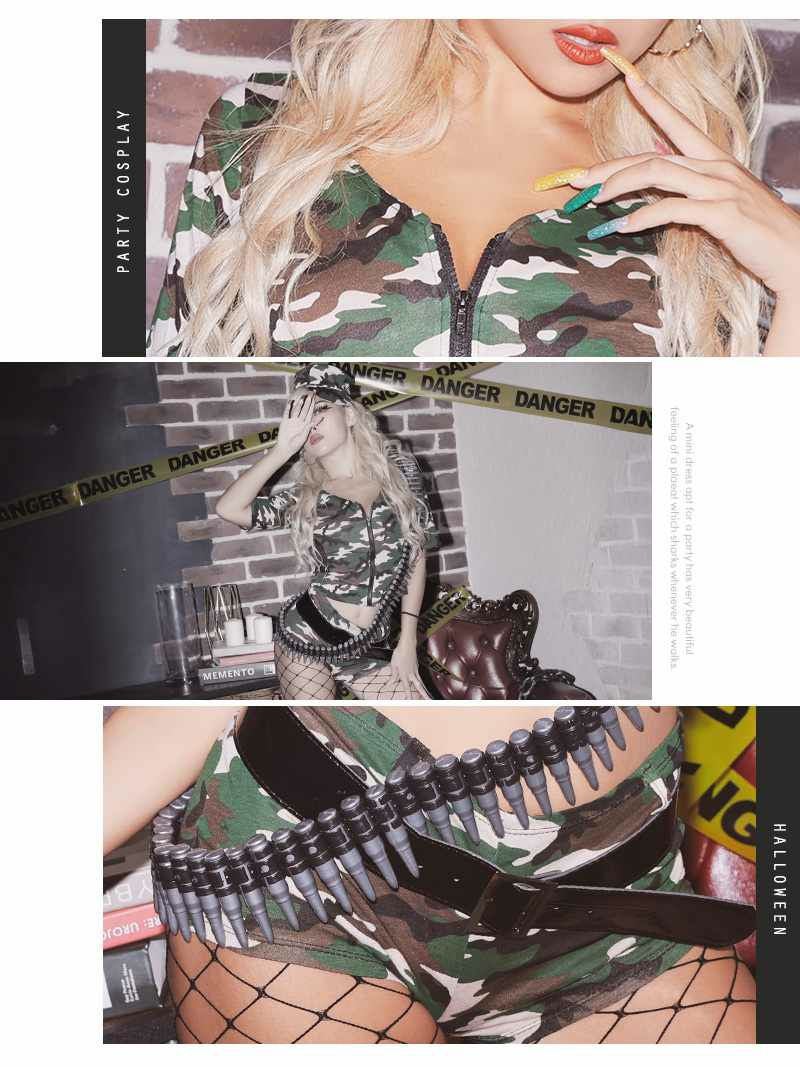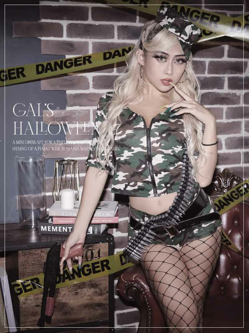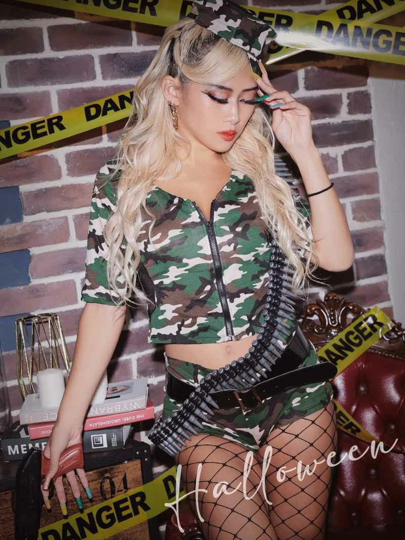 迷彩×マイクロミニでセクシーにキマるハロウィン仮装♪ コスプレ SWAT風アーミーセットアップコスプレ【Ryuyu】(M)(カーキ)
