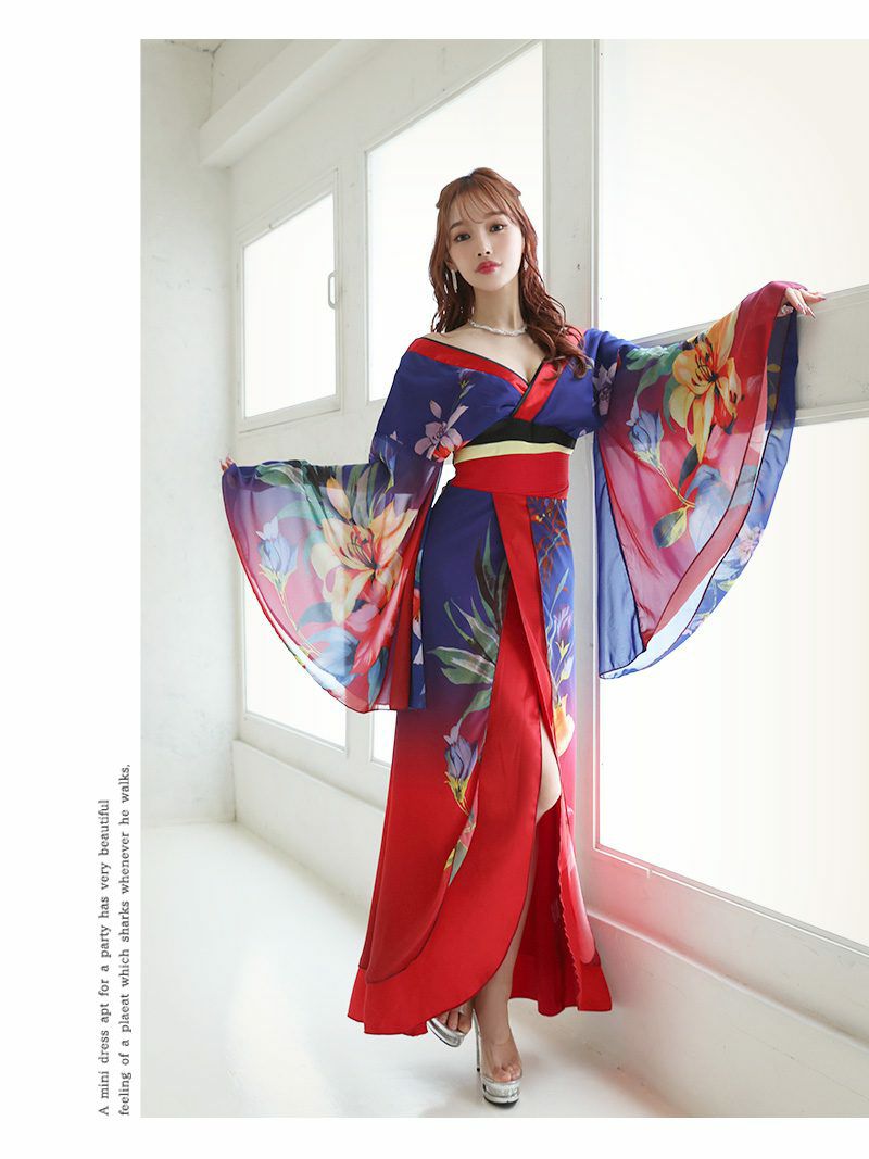 6. 艶やか花柄優美な花魁ドレス【Ryuyu】(S/M/L/XL/XXL)(ネイビー)