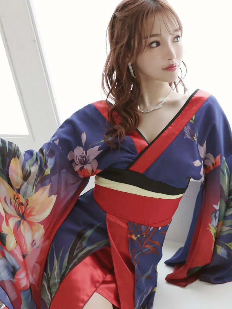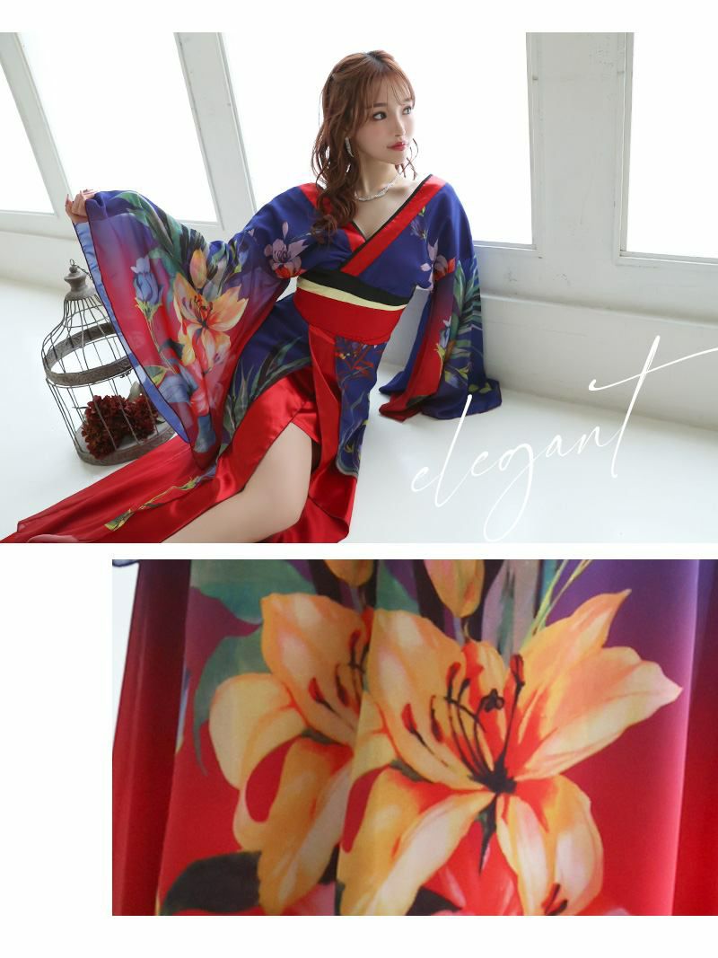 5. 艶やか花柄優美な花魁ドレス【Ryuyu】(S/M/L/XL/XXL)(ネイビー)