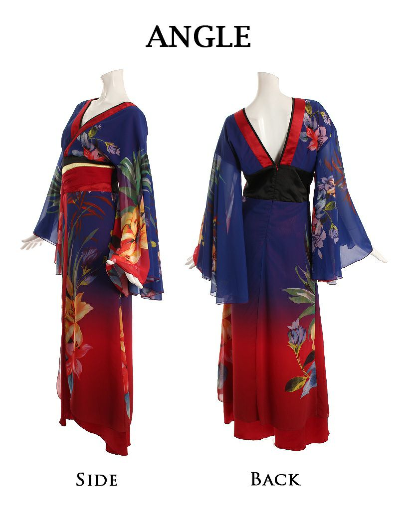 4. 艶やか花柄優美な花魁ドレス【Ryuyu】(S/M/L/XL/XXL)(ネイビー)