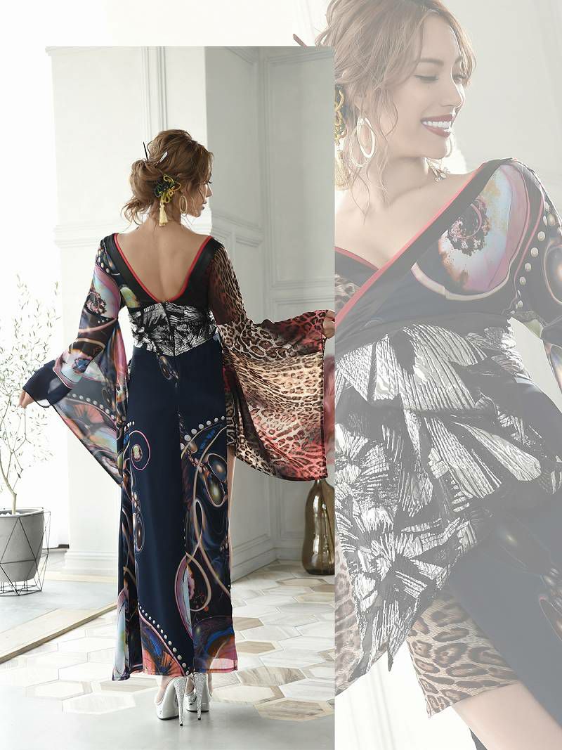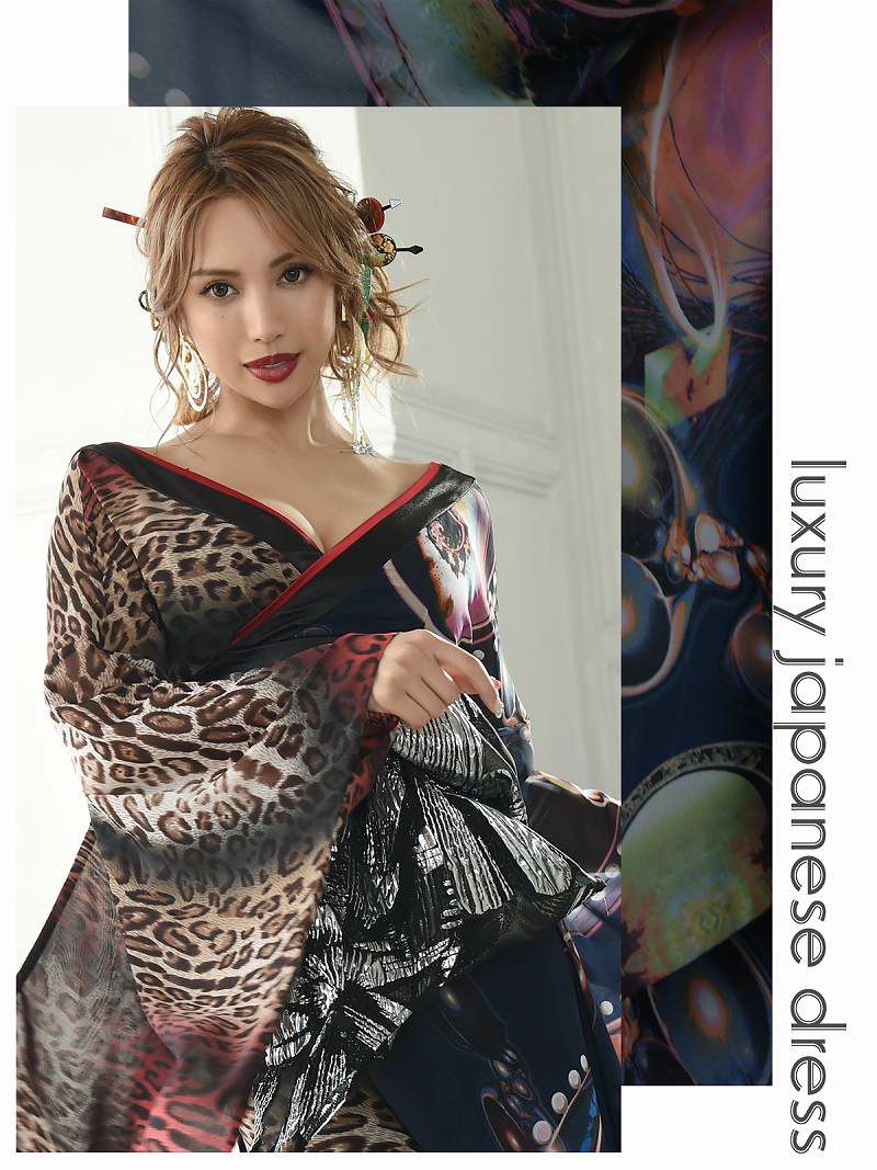 【流遊】の花魁和柄ドレスは、アニマル柄と半身柄が特徴的なセクシーで高級感あふれるデザイン。