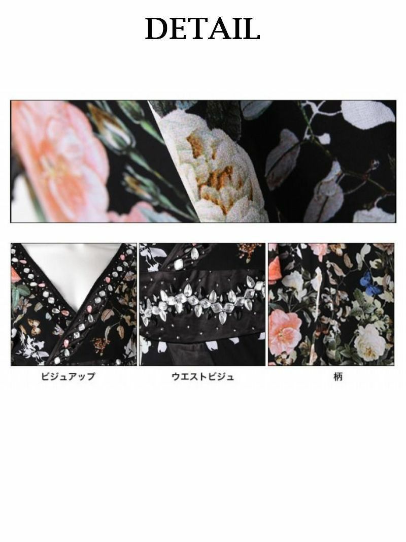 繊細な和柄が華やかさを演出し、キャバドレスや着物ドレスとしてはもちろん、ハロウィンやコスプレイベントにも最適。特別なシーンで存在感を放つ一着。
