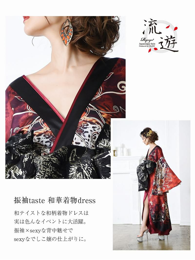 5. 【訳ありアウトレット】和テイスト豹柄の豪華花魁セクシー和柄ドレス【流遊】(S/M/L/XL)(レッド)