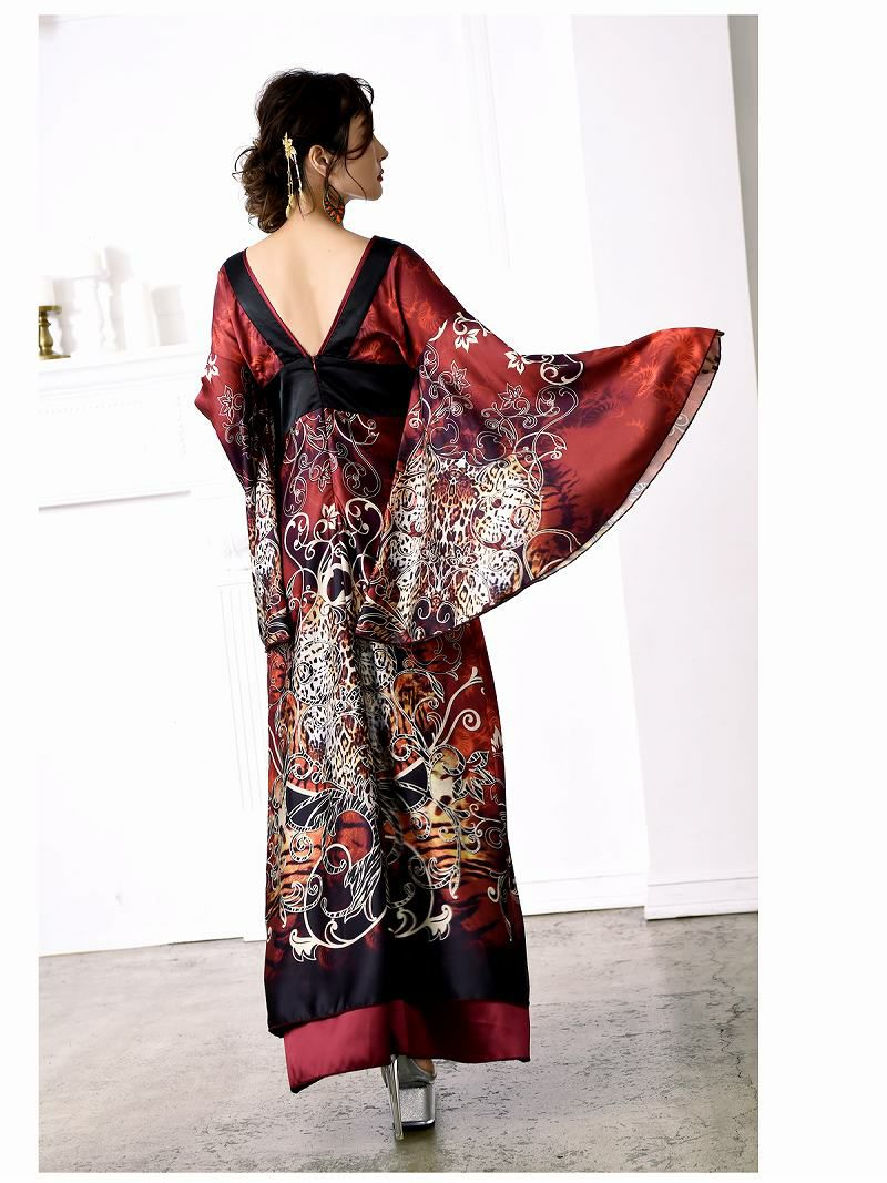 4. 【訳ありアウトレット】和テイスト豹柄の豪華花魁セクシー和柄ドレス【流遊】(S/M/L/XL)(レッド)