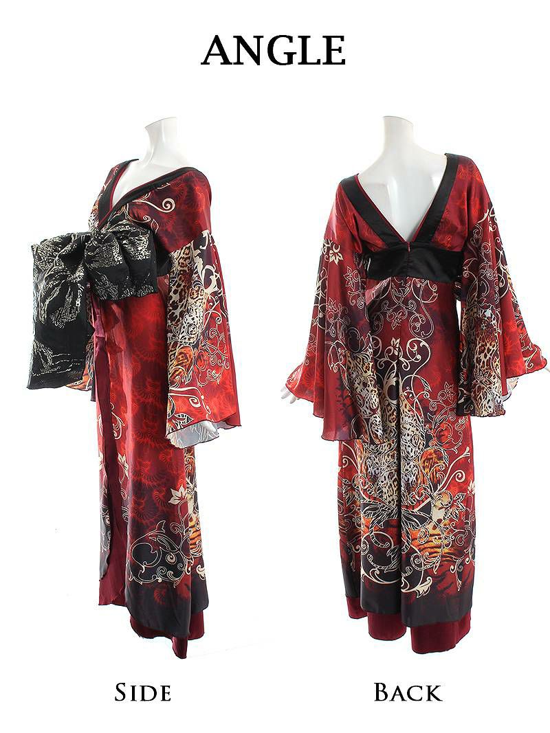 訳あり和のワイルドキャット 【訳ありアウトレット】和テイスト豹柄の豪華花魁セクシー和柄ドレス【流遊】(S/M/L/XL)(レッド)