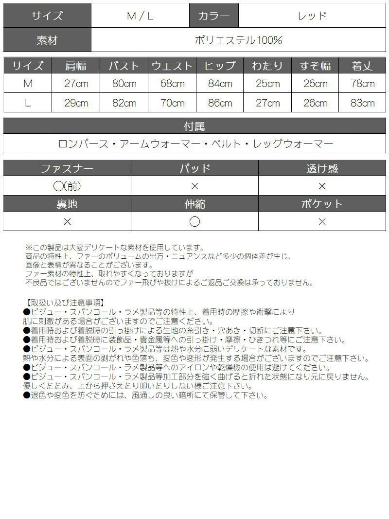 セット内容:ロンパース・アームウォーマー・ベルト・レッグウォーマー