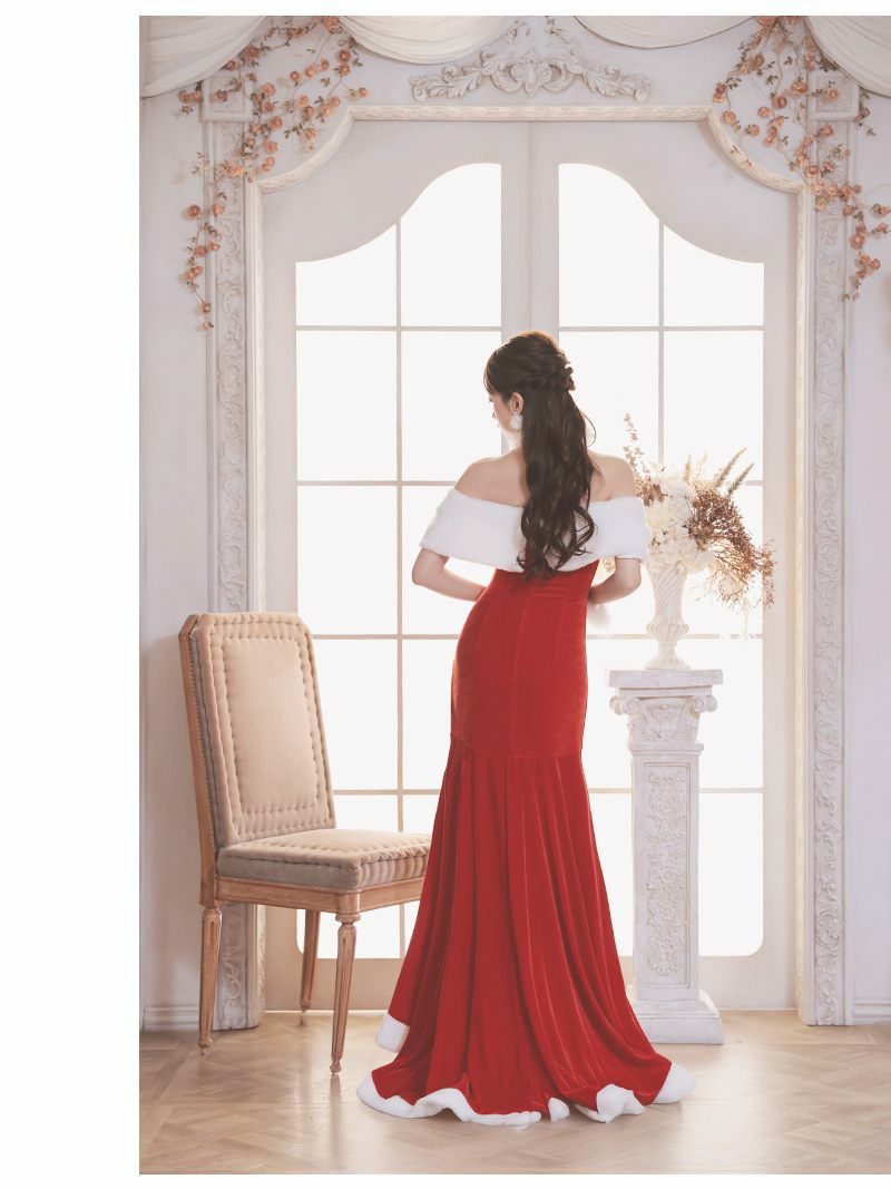 ふんだんにあしらわれた真っ白なファーが、クリスマスの華やかな雰囲気を盛り上げます。