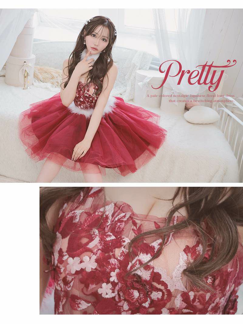 4. フラワーチュールフレアベアミニドレス りせり 着用 キャバドレス【Ryuyu】(S/M/L)(レッド)