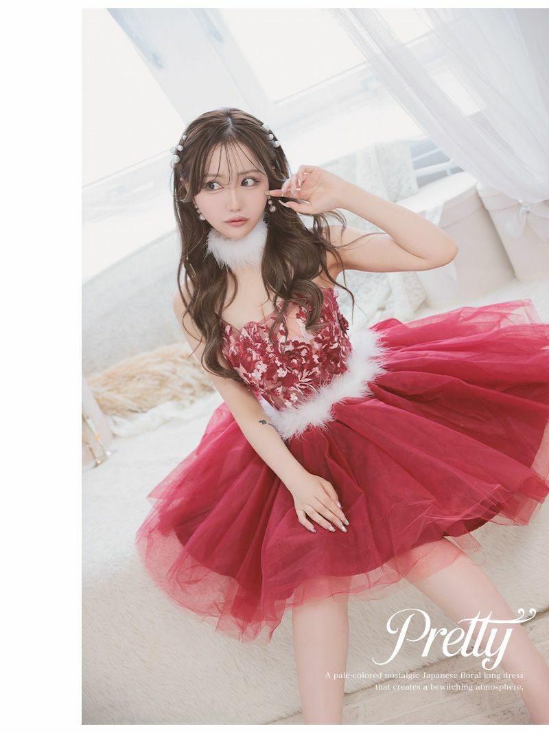 ふんわり広がるチュールスカートが存在感たっぷりのサンタドレス。