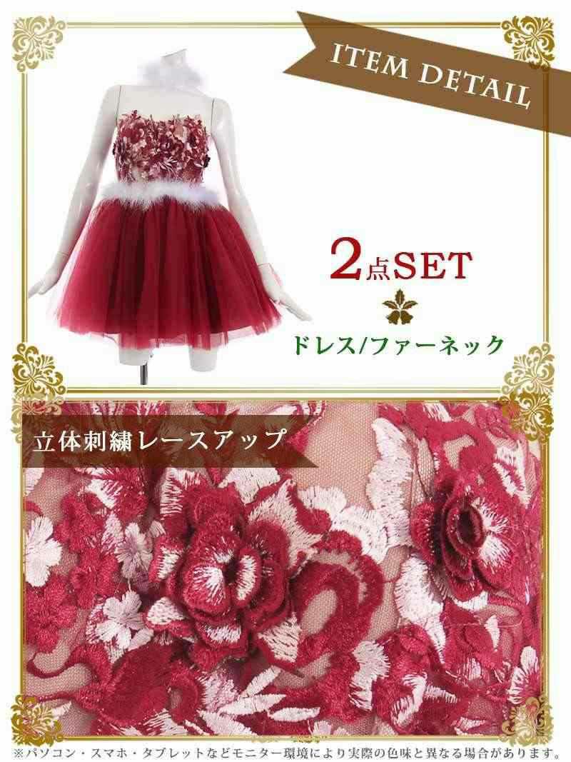 可愛さと華やかさを両立☆ フラワーチュールフレアベアミニドレス りせり 着用 キャバドレス【Ryuyu】(S/M/L)(レッド)