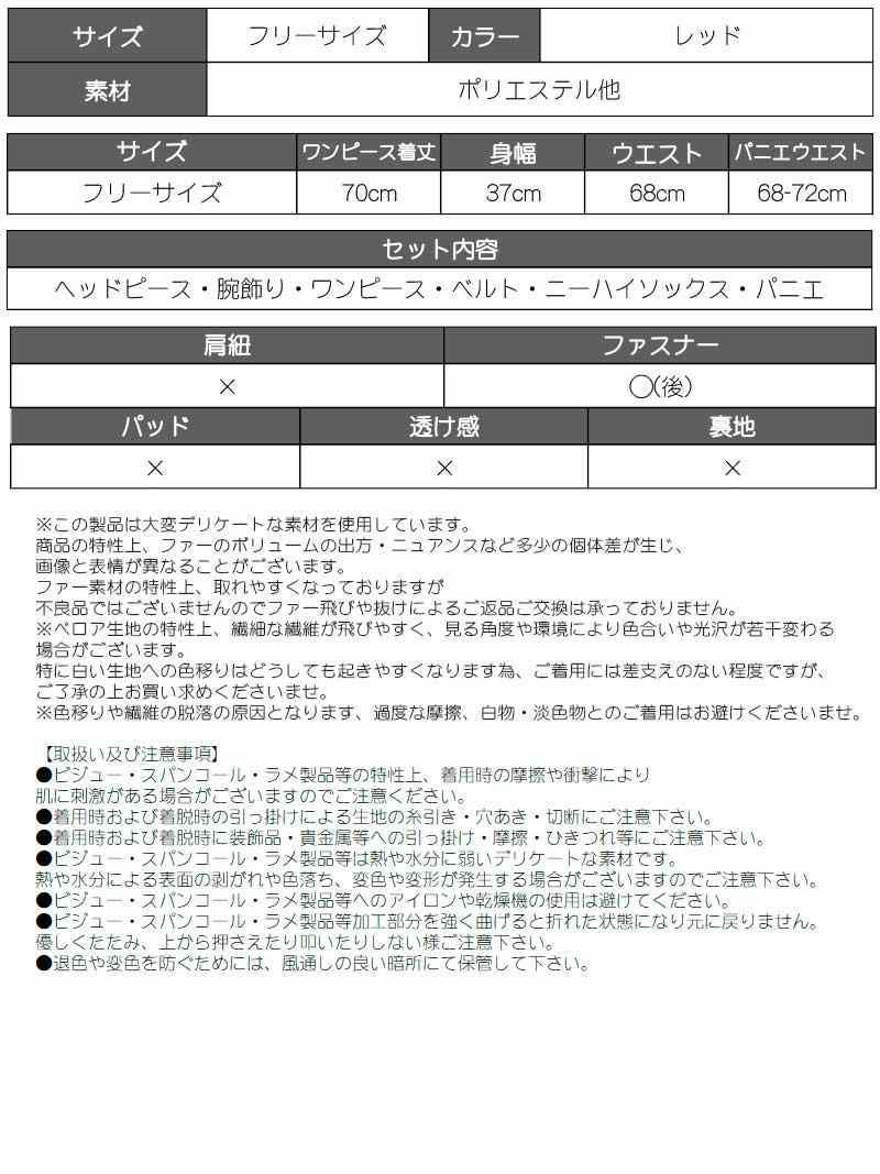 セット内容:ワンピース・パニエ・ベルト・腕飾り・ヘッドピース・ニーハイソックス