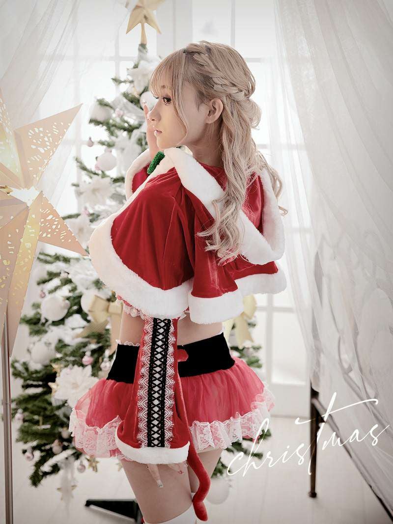 サンタコスプレ ケープ付きセットアップキャットサンタコスプレ8点セット あいみん 着用 サンタコスプレ【Ryuyu】