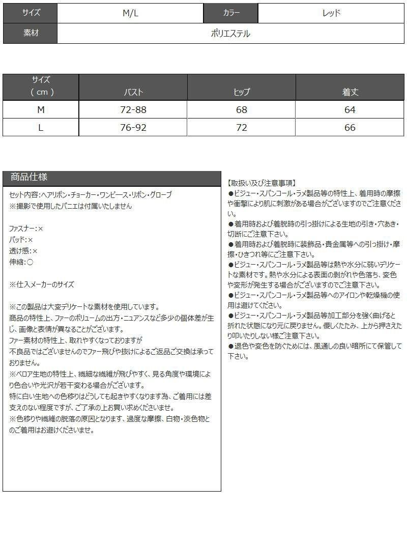 セット内容:ヘアリボン・チョーカー・ワンピ―ス・リボン・グローブ