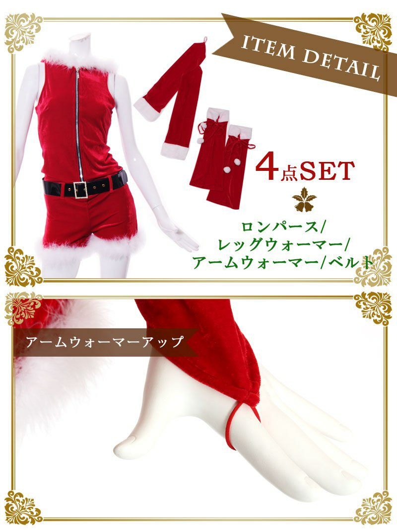 即戦力◎ファスナーで着脱楽ちん♪ベロア素材のショートパンツサンタコスチューム【Ryuyu】