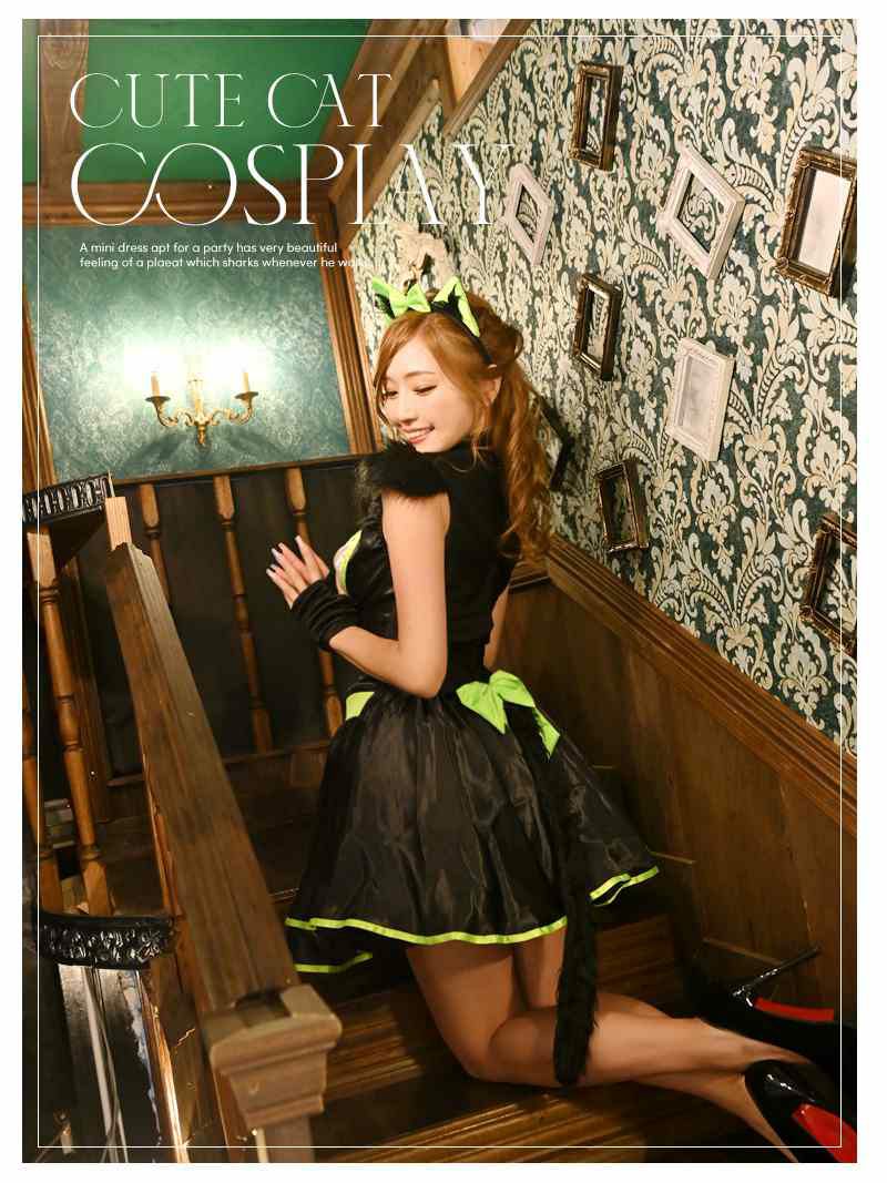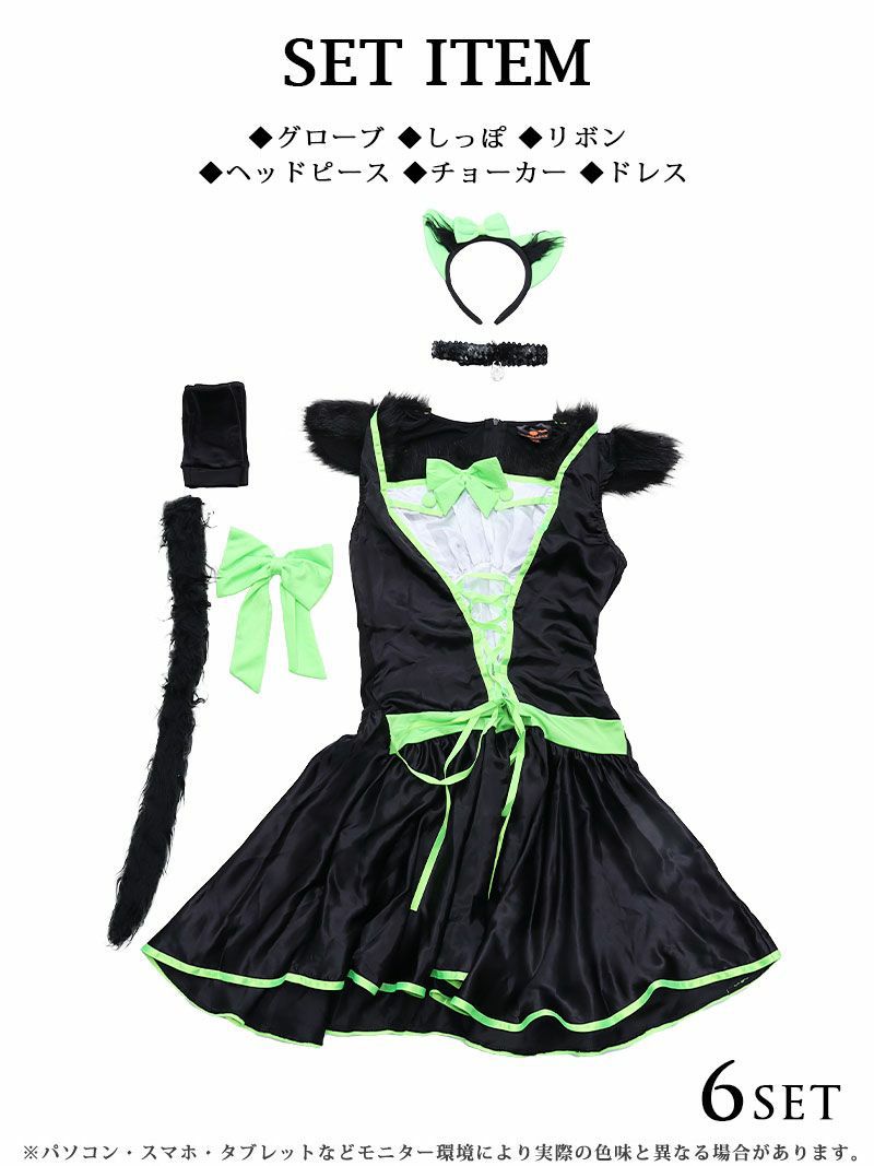 かわいい猫ちゃんコスプレを特別価格で♪ 【訳ありアウトレット】ハロウィンコスプレ ネオンカラー猫ちゃんハロウィンコスプレ6点セット【Ryuyu】(M)(ブラック)