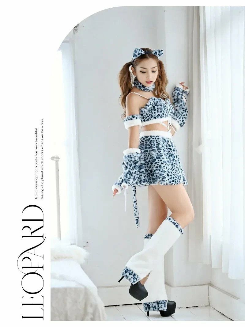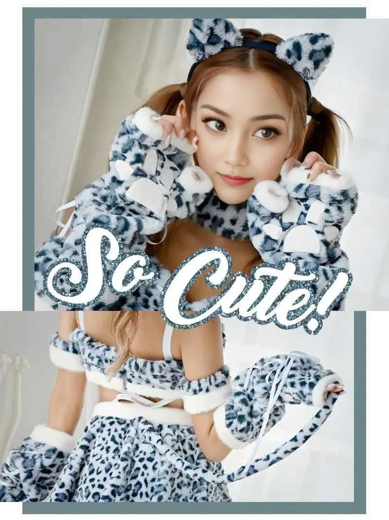 ギャルかわいい、もこもこアニマルコス♪ ハロウィンコスプレ グレーレオパードもこもこアニマルギャルコスプレ レディースコスプレ【Ryuyu】(フリーサイズ)(グレー)