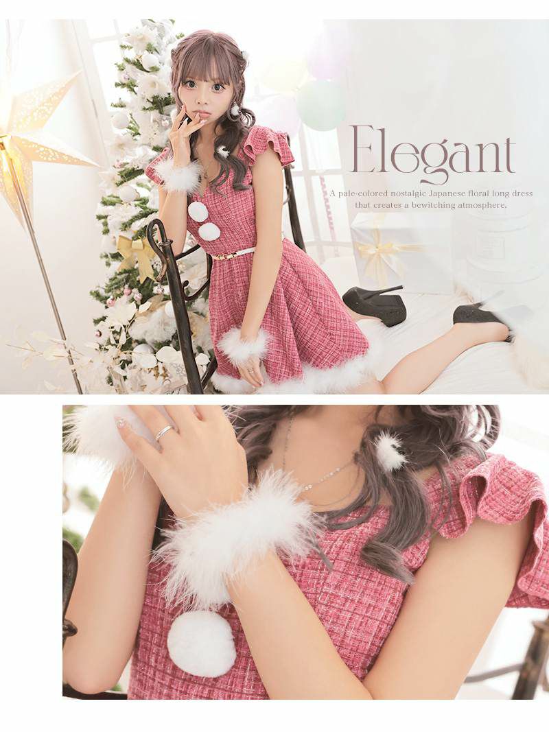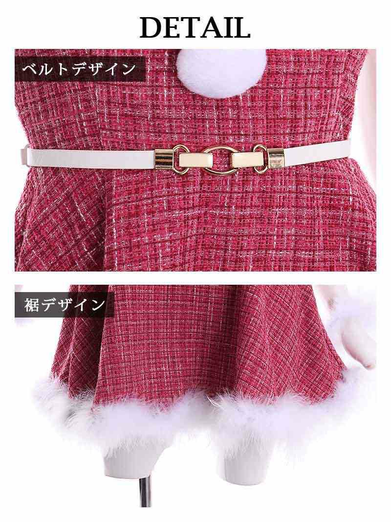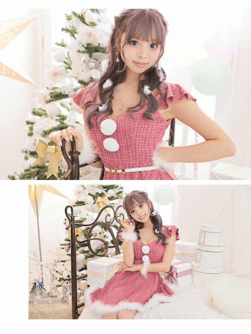 かわいさたっぷりなクリスマスドレス チェックツイードガーリーピンクサンタドレス あいさ 着用 サンタコスプレ【Ryuyu】(S/M/L)(ピンク)