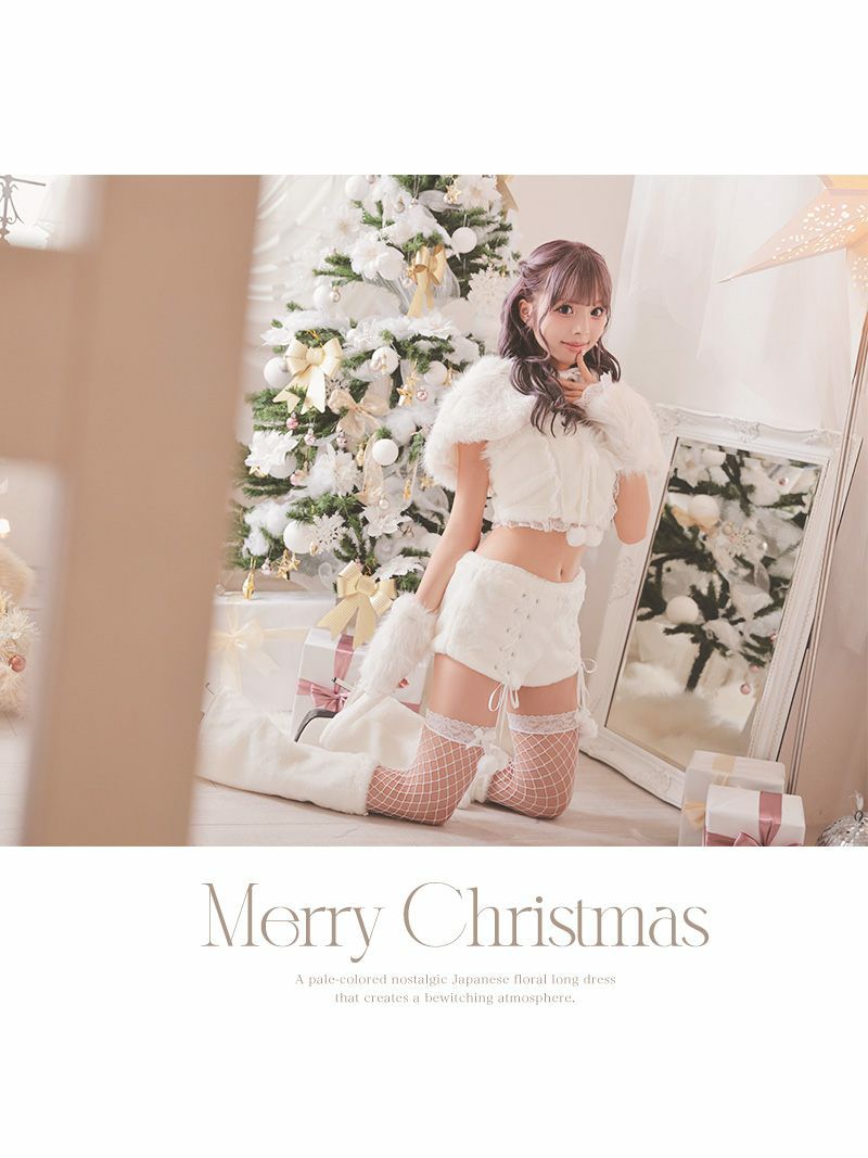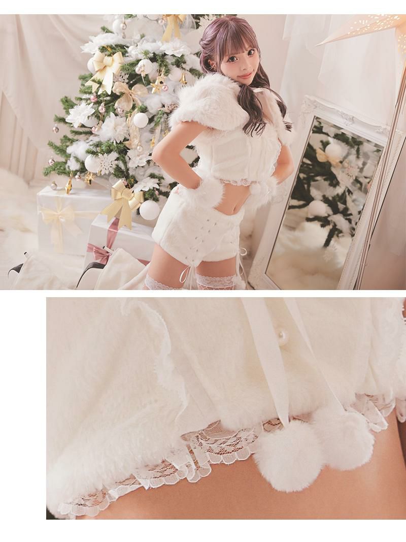 お腹見せと足見せでちぃっぴりSexyさもプラス サンタコスプレ ふわふわキャットサンタコス7点セットあいさ 着用パンツキャバサンタ【Ryuyu】(フリーサイズ)(ホワイト)