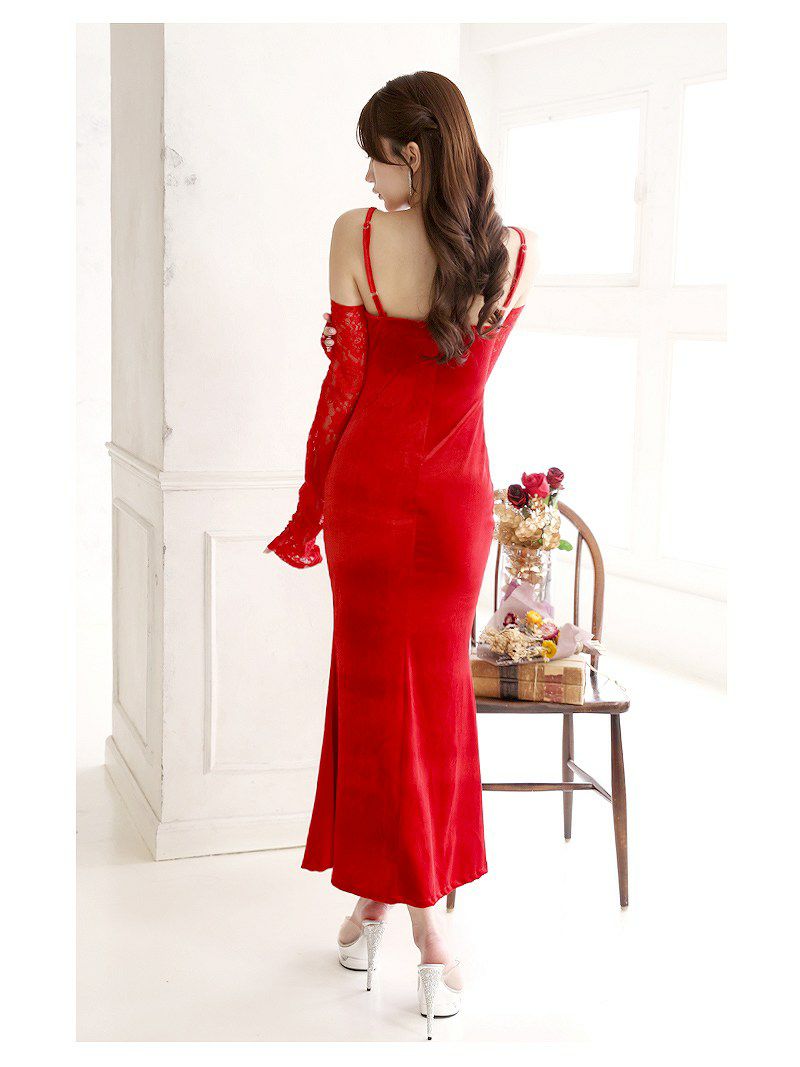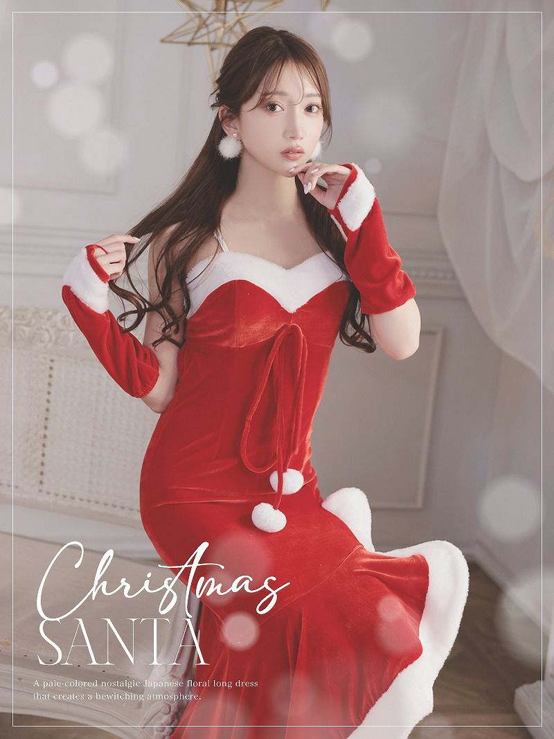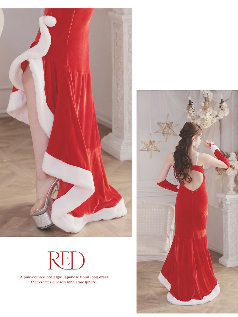 魅惑のマーメイドライン!大人セクシーなサンタで最高のクリスマスを サンタコスプレ セクシーマーメイドラインサンタコスプレロングドレス【Ryuyu】(M/L/XL(2L))(レッド)