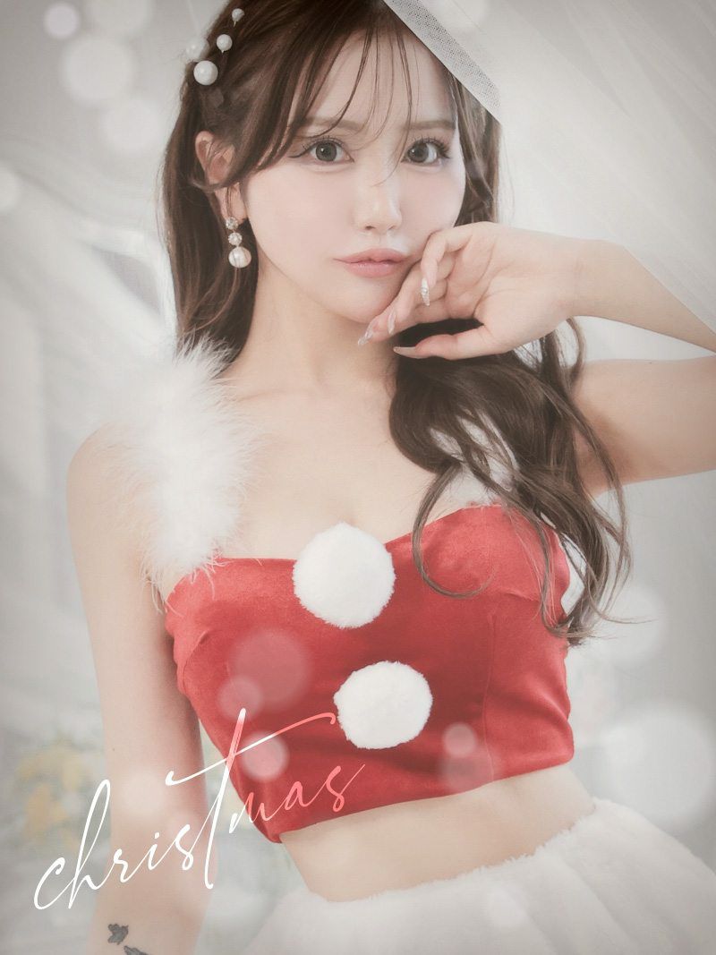 赤色サンタさんでキラキラ可愛く♪ サンタコスプレ キラキラ赤色ベアトップフレアサンタコスプレ3点セット Seira 着用キャバサンタ【Ryuyu】(フリーサイズ)(レッド)