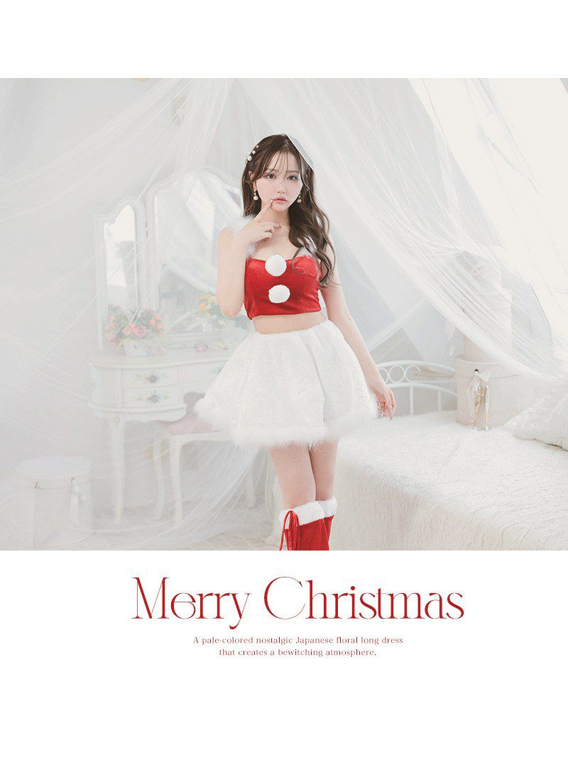今年のクリスマスパーティーは誰よりも可愛く目立っちゃお! サンタコスプレ ふわもこファーのミニ丈サンタセットアップ【Ryuyu】(S/M/L)(レッド)